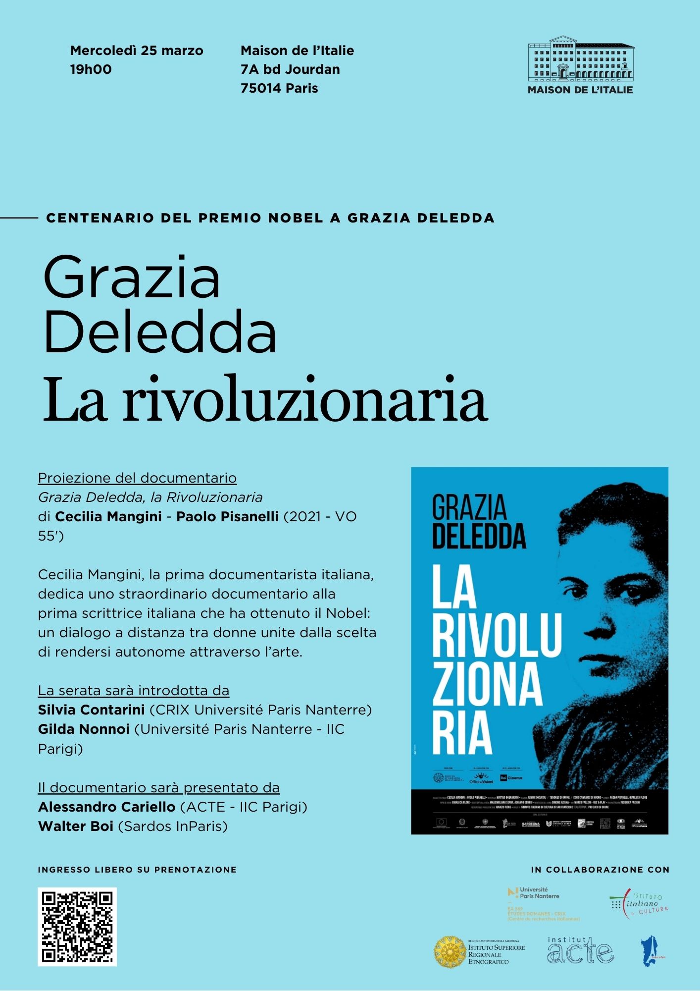 - [Festival Italissimo] Rencontre avec l'écrivaine Francesca Melandri : Devant la guerre9 avril 2026L'université Paris Nanterre reçoit l'écrivaine Francesca Melandri dans le cadre du festival ITALISSIMO, “Festival de littérature et de culture italiennes". Rencontre animée par Silvia Contarini et Ada D'Agostino, lectures par Christophe Mileschi. Lire la suite
